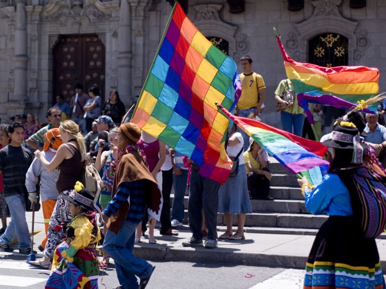 The rainbow remains a powerful symbol for communities around the world, many of whom use the rainbow flag to symbolize diversity and respect. The Wiphala, above, is a symbol of communities indigenous to the Andes Mountains, stretching from modern-day Ecuador to Chile. The Wiphala features a diagonal patchwork design with squares in different rainbow colors. Different arrangements of patchwork squares represent different Andean communities.