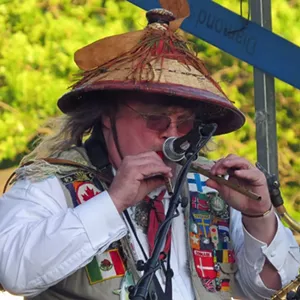 Barnes was a member of Brave Combo for nearly half of his life, learning new instruments along the way. During recording sessions, he’d play saxophone, clarinet, flute, harmonica, penny whistles, guitar and organ. He taught himself Mongolian Tuvan throat singing, in which one sings a fundamental pitch and layers on several other pitches simultaneously. He’s a bit of a collector, and exotic instruments from around the world are scattered around his house.